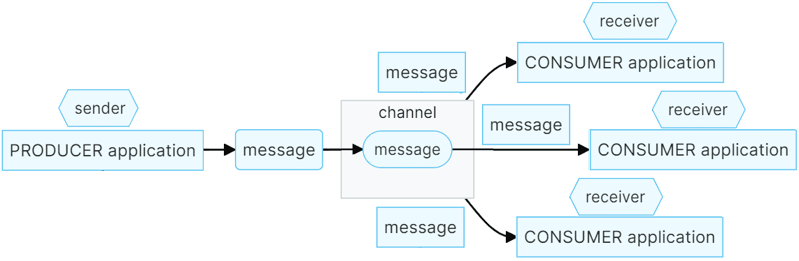 - Канал – механизм, созданный сервером для организации и передачи сообщений. Пользователи могут определять каналы как топик или очередь, включая ключ маршрутизации и путь в зависимости от используемого протокола. Серверы могут поддерживать множество экземпляров каналов, позволяя отправлять сообщения с разным содержимым в разные каналы. В зависимости от реализации сервера канал может быть включен в сообщение через заголовки, определенные протоколом.
