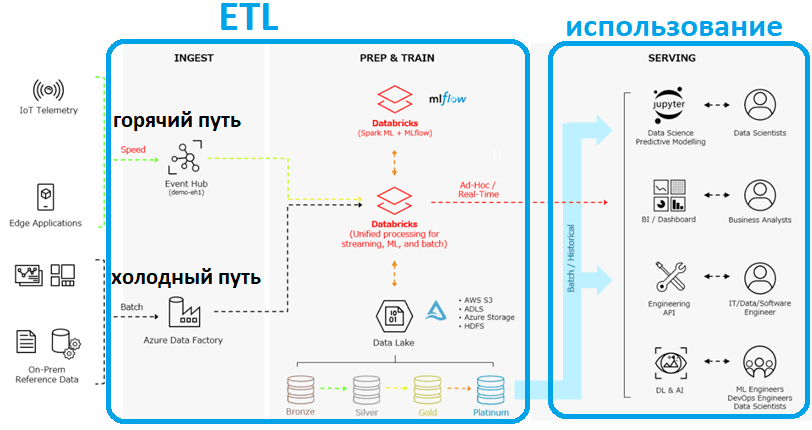 - пакетный уровень для хранения больших данных и агрегаций на них;