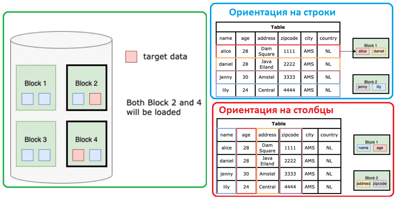 Как данные хранятся на диске при разной ориентации хранилища в СУБД: чем отличаются колоночные базы от строковых с точки зрения практического использования в дата-инженерии. Сравнительная таблица с примерами и выводами.