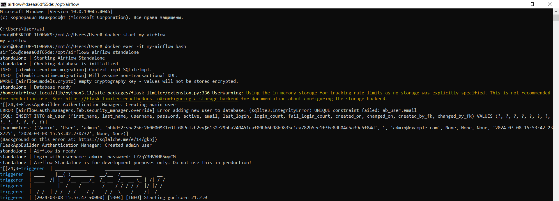 - Наконец, запустить Apache AirFlow в режиме standalone: