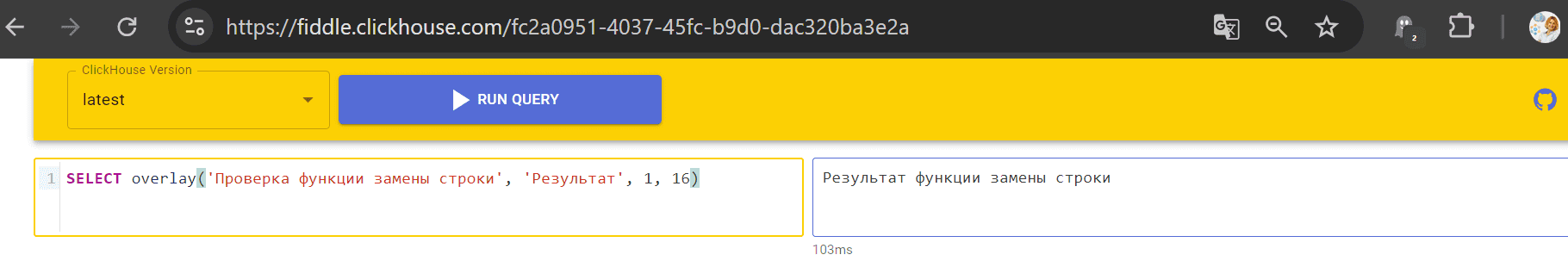Наконец, еще одной полезной функцией для обработки текстовых данных в релизе 24.9 стала overlay. Она позволяет заменить фрагмент одной строки на другую строку. Надо указать начальную строку, строку замены, а затем индекс, с которого начинать замену, и сколько символов заменить. Например, заменим слово «Проверка» на слово «Результат» во фразе «Проверка функции замены строки»: