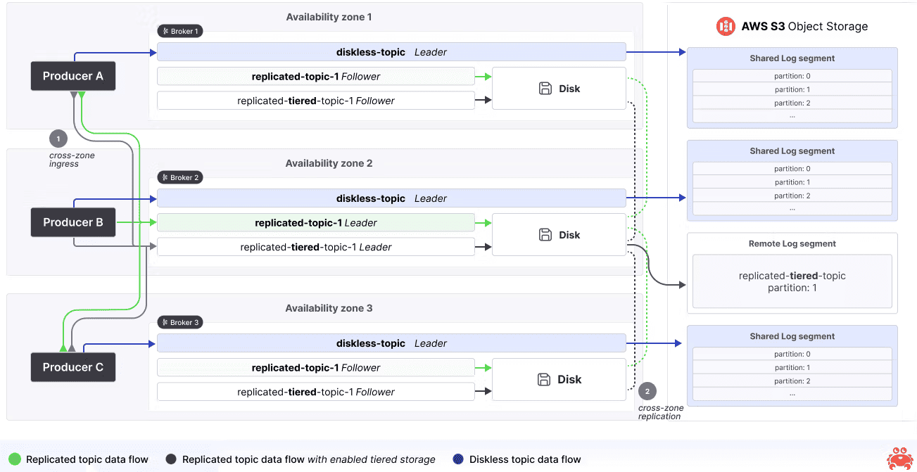 Кроме того, хотя многоуровневое хранилище может сократить некоторые расходы на хранение за счет выгрузки холодных данных неактивных сегментов в объектное хранилище, пользователям по-прежнему необходимо выделять значительное локальное дисковое пространство для горячих данных и обработки пиковых нагрузок. Это означает, что высокие затраты на облачные диски сохраняются, а плата за сетевой трафик (особенно в зонах доступности) остается основной статьей расходов.