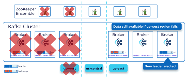 Как уже было отмечено, благодаря KIP-392 можно добиться лучшей локализации в нескольких регионах. Это улучшение позволяет приложениям-потребителям получать данные из ведомой реплики, если она находится ближе, чем ведущая. Включить эту функцию поможет настройка RackAwareReplicaSelector и конфигурация брокеров brocker.rack. Также нужно настроить конфигурацию потребителя в конфигурации client.rack.