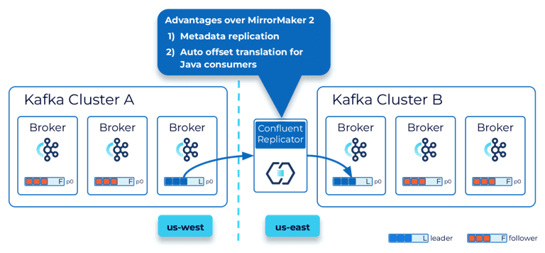 Кроме MirrorMaker 2 можно воспользоваться Confluent Replicator, который поддерживает репликацию метаданных, автоматическое создание топиков и автоматический перевод смещения для потребителей Java. Подробнее об этом решении мы писали в прошлой статье.