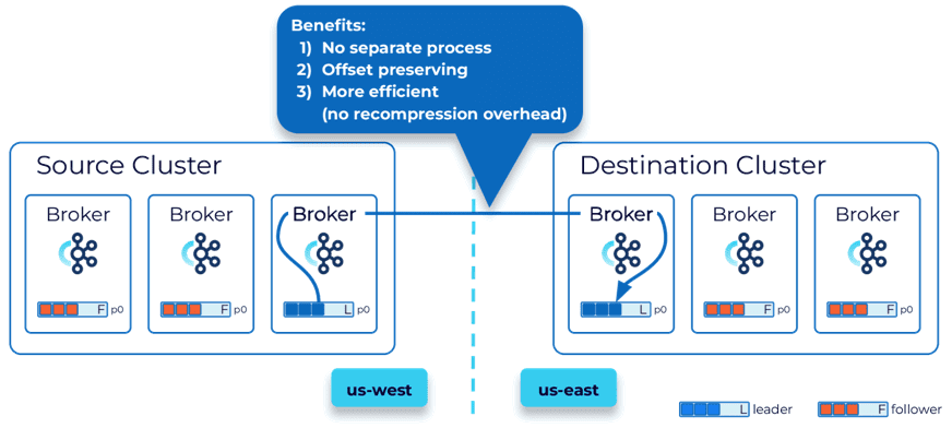 Когда пункт назначения инициирует соединение, источнику придется открыть порты брандмауэра, чтобы разрешить это. Если это запрещено по требованиям безопасности, соединение будет инициировать сам источник, а целевой кластер использует его для получения данных.