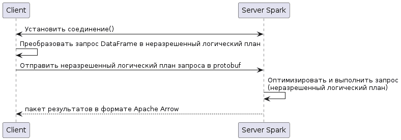 Последовательность работы Spark Connect можно описать так: