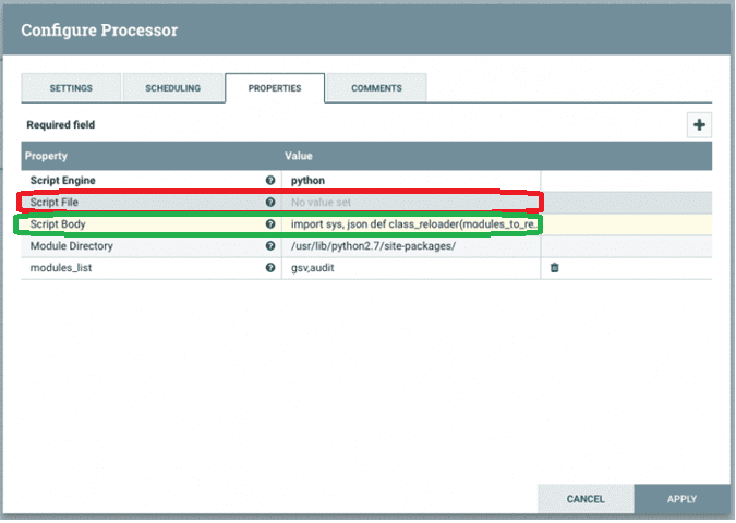 Однако, чтобы применить написанные скрипты, в процессоре ExecuteScrip следует разрешить выполнение кода, что несет высокие риски, позволяя выполнять практически все, что может сделать пользователь, который запускает сервер NiFi. Подробнее об этом мы писали здесь. Для эффективной работы с процессором ExecuteScript скрипт рекомендуется вставлять в поле Script Body вместо Script File.