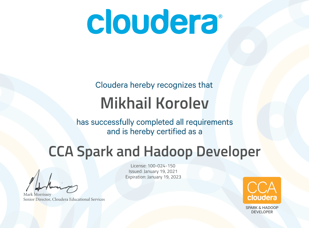 • Эксперт по построению Data Lake и аналитике больших данных на решениях Arenadata, Cloudera и в облачных средах.